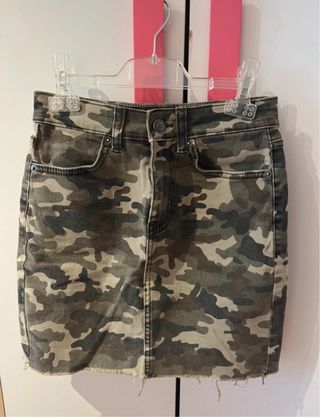 Minifalda vaquera de estampado camuflaje ajustada. Talla 32 de Bershka en perfecto estado. Mide 39cm de largo.