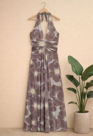 Vestido midi con un bonito estampado floral. - Diseño con escote halter. - Falda amplia y fluida. - vestido largo estanpado tul cut out viral de zara
