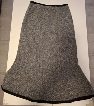 Falda larga con estampado de pata de gallo. Tiene un corte acampanado y un ribete negro en la cintura y el bajo. Talla 44 - Diseño clásico de pata de gallo. - Ribete negro en cintura y bajo. - Corte acampanado.