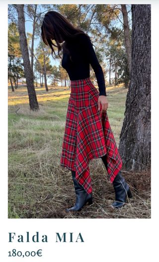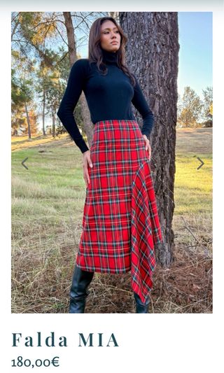 Falda larga con estampado de cuadros escoceses en tonos rojos y verdes. Diseño asimétrico. - Largo midi. - Cintura alta. - Tejido de poliéster.