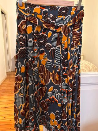 Falda midi con un bonito estampado floral. Es una prenda versátil y cómoda. - Diseño con flores pequeñas. - Largo midi. - Corte Evasé con forro En perfecto estado.