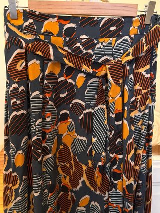 Falda larga con un bonito estampado y vuelo. - Diseño llamativo y original. - Cintura con cinturón para ajustar. - Tejido ligero y fluido.
