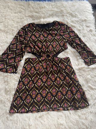 Vestido con estampado floral en tonos azules y multicolor. Presenta un diseño con mangas largas y falda con vuelo. - Estampado floral. - Mangas largas. - Diseño con vuelo. Son dos vestidos iguales pero con distinto estampado. Cómodos. Talla S amplia. S-M. 10 euros unidad. Cogiendo los dos, descuento de 2 euros.