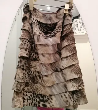Falda Punto Roma volantes animal print