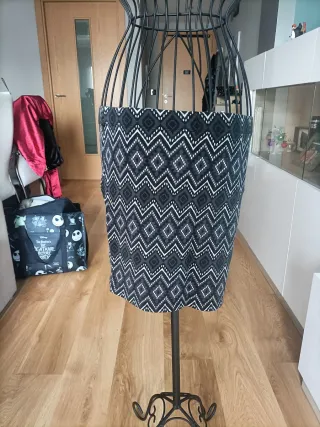 Falda con un diseño vibrante y llamativo, perfecta para añadir un toque de color a tu armario. - Tejido con estampado de rayas y motivos geométricos. - Diseño fluido y cómodo. 2 bolsillos, cierre con cremallera, tejido de algodón. La medida de largo es 63 cm y el contorno de la cintura 80 cm. Muy poco uso