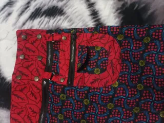 Mini falda chica original con un diseño llamativo y moderno. Vale para muchas tallas ya que lleva corchetes , reversible, con cremallera también para poder llevar la parte de arriba y de abajo distintas. Sin estrenar. Largo 45 cm. Lleva un bolsillo que se puede poner y quitar. Estilo boho chic. Hippie. Negociable. - Estampado vibrante con detalles en rojo y otros colores. - Cierre de cremallera. - Adornos metálicos. - Bolsillo frontal.