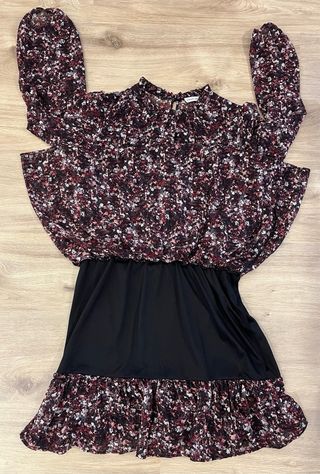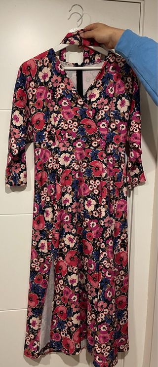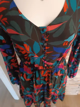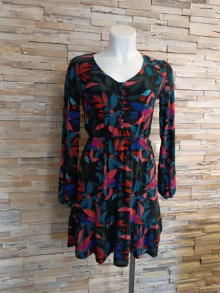 Vestido de adolescente con un bonito estampado floral. Solo se ha puesto una vez. - Diseño con cuello en V. - Mangas largas abullonadas. - Falda con volantes.