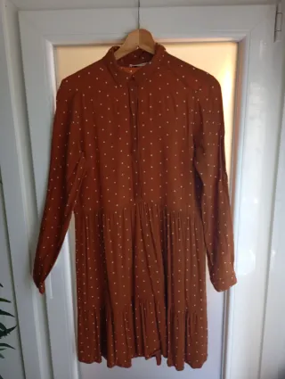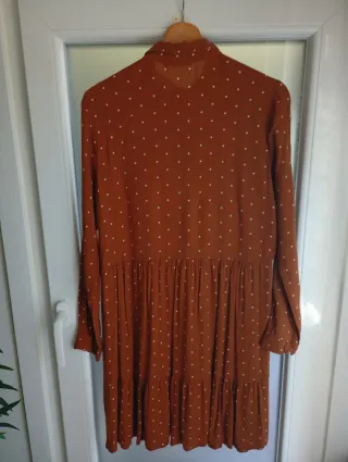 Vestido de invierno de Pull & Bear con un estampado de lunares. - Diseño con cuello camisero. - Cierre de botones. - Mangas largas. - Varios volantes en la falda.Elastico en los puños. Llega por encima de la rodilla.