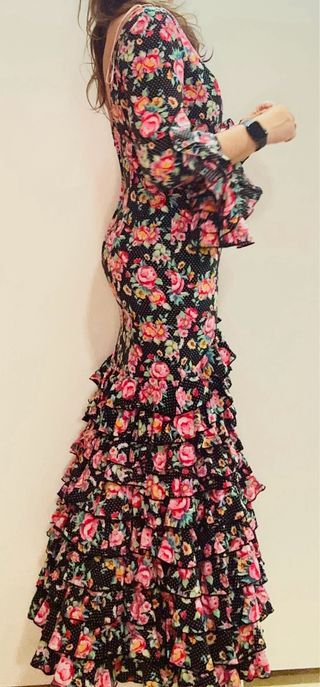 Traje de flamenca flores y lunares
