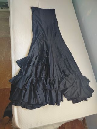 Falda larga flamenco conservatorio. Pequeño descosido lateral inapreciable - Diseño con volantes escalonados. - Tejido ligero y con caída.