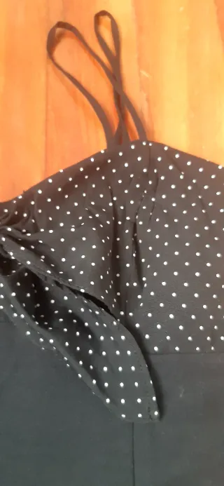 Vestido largo con un diseño elegante y detalles de lunares en el pecho - Tirantes finos. - pecho con estampado de lunares. - Lazada decorativa en el pecho. - Falda larga y fluida. -superbonito puesto, hace tipazo. - talla xs-s