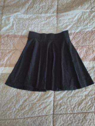 Falda negra de tablas. - Cintura elástica. - Largo por encima de la rodilla. - Tejido suave y ligero. - 95% algodón 5% elastano. - Muy cómoda y fácil de conjuntar.