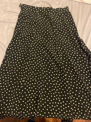 Falda larga con un estampado clásico de lunares. - Diseño de lunares blancos sobre fondo negro. - Corte fluido y elegante.