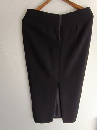 Falda elegante de color negro. - Diseño ajustado. - Largo midi.