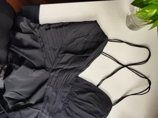 Elegante vestido de gala con un diseño sofisticado. - Escote en V con drapeado. - Tirantes finos. - Falda con vuelo. - Largo 68cm - Pecho 38cm - Cintura 34cm