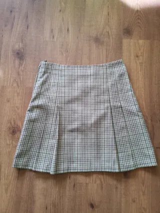 Falda corta con estampado de cuadros. - Diseño de cuadros pequeños. - Tejido ligero. - En perfectas condiciones - Largo 41 cms