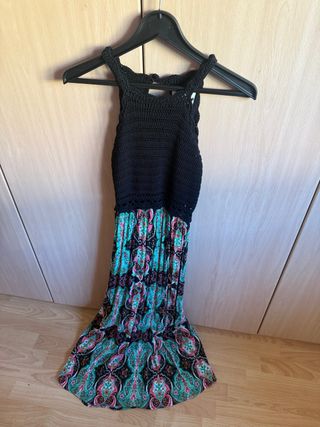 Vestido fiesta negro largo volantes Talla 40/42