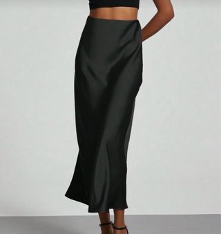 Elegante falda larga de satén. - Diseño liso y fluido. - Tacto sedoso. - Corte favorecedor.