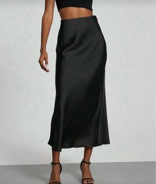 Falda larga de satén negra