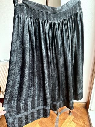 Falda larga negra tejido satinado. Forro con encaje. Cremallera lateral. Talla M pequeña, más bien una S. Made in Spain. Puesta una sola vez.