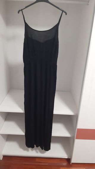 Vestido largo negro básico, muy cómodo para verano, tiene dos aberturas en la parte de la falda y cintura elástica.