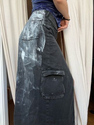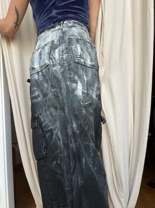 Falda larga de estilo cargo con un diseño único pintado a mano. Una pieza original para destacar tu estilo. - Diseño abstracto con pintura blanca. - Bolsillos cargo funcionales. - Largo maxi.