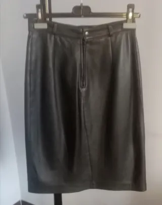 Elegante falda de piel muy suave. Poco usada. -Cierre con botón y cremallera trasera y forrada. - Diseño recto. - Largo por debajo rodilla. - Cintura con trabillas para cinturon.