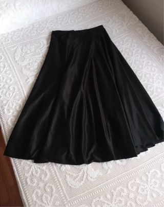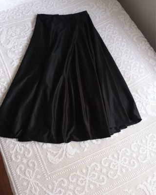 Falda larga de corte amplio, ideal para baile español o flamenco. Su diseño permite un gran movimiento. Mide 0,72cm cintura y 0,90 cm de larga - Tejido satinado. - Cintura alta. Envio maximo en 24h