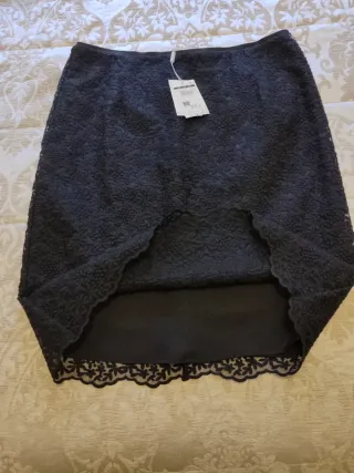 Bonita falda de vestir negra, larga, encaje abajo. Cintura con elastico da talla 36/40. Un uso.