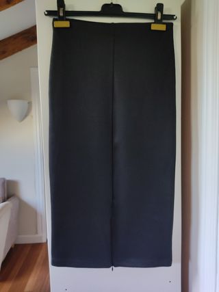 Falda larga de color negro con un diseño elegante y práctico. -Talla: S. - Medidas: 36 cms de cintura, 74 cms de largo - Bolsillos laterales. - Abertura en la parte trasera para mayor comodidad. SI TE LLEVAS OTRA COSA DEL PERFIL SE QUEDA EN 7,5!!