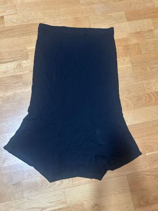 Falda larga de color negro. Su diseño es liso y elegante. - Tejido ligero y fluido. - Cintura elástica para mayor comodidad. - Bajo con acabado ondulado. Zona Quintana