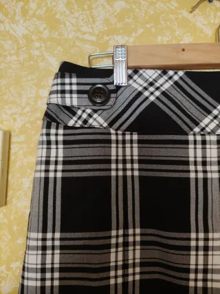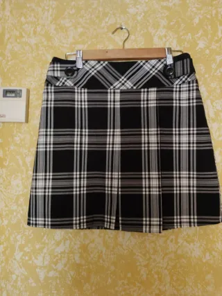 Falda tableada con un diseño de cuadros clásico. - Diseño de cuadros. - Cintura con botones decorativos. - Pliegues en la parte delantera.cremallera oculta lateral , 46 CMS de largo