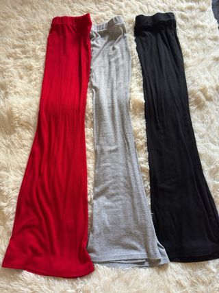Conjunto de tres faldas largas. - Falda roja. - Falda gris. - Falda negra.