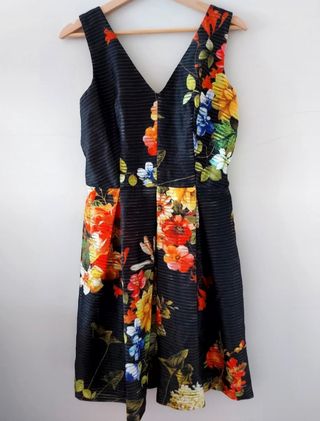 🧡 Impecable. Perfecto estado. 🧡 Talla S. Medidas: -cintura 37cm. -axila-axila 42cm. -largo total 94cm. 🧡 Vestido negro de bonito estampado floral. Su tejido en poliamida es muy similar a la organza con un poquito de seda, y su relieve va dibujando aguas. 🧡 Cuello en V, con tirantes, forro negro interior y cremallera en la espalda invisible de 31cm. 🧡 De corte entallado en su parte superior y falda con tablas anchas, no es vaporoso, tiene buena caida y es muy ligero. 🧡 Ideal para un cocktail, evento o ceremonia de dia o una graduación. #robertoverino #vestidotallas #cockail #graduacion #ceremonia #vestidorobertoverino
