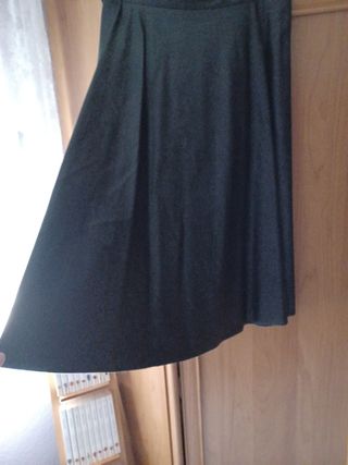 Falda patinadora a estrenar en perfecto estado. La talla es como una M. El color es negro. Medidas: - Cintura elástica y mide 34cm sin estirar; - Largo: 42cm.