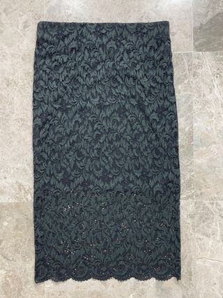 Elegante falda con un intrincado diseño de encaje. - Diseño de encaje floral. - Largo hasta la rodilla. - Acabado festoneado en el dobladillo.