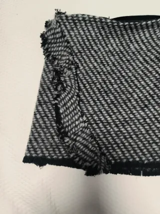 Minifalda de de Bimba y Lola, talla L De cintura mide 41-42 cm Y de largo 38cm. 60% lana, 40% poliester La falda de color gris y negra,acabado con flecos. Puesta sólo una vez Muy buen estado , prácticamente nueva . Forrada