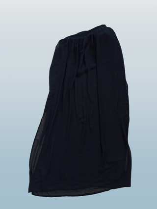 Falda larga de color negro, con un diseño elegante y moderno. Perfecta para diversas ocasiones. - Cintura elástica. - Abertura lateral pronunciada.