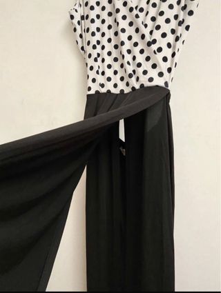 Vestido largo fiesta lunares blanco y negro
