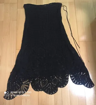 Falda midi de ganchillo ( también se puede usar cómo vestido). Se ajusta con cordón y lleva botones en un lateral. Perfecta para añadir un toque especial a tu armario. Talla S pero sirve también para más talla. - Forrada. - Tejido de ganchillo intrincado. - Largo midi.