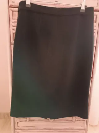 Elegante falda tubo negra de la marca nice things, con abertura por detrás, por debajo de la rodilla, cierre cremallera, forrada, en muy buen estado y de una calidad muy buena. Medidas Talla 38 Cintura 38 Largo 62 - Color negro. - Diseño de corte recto. - Ideal para ocasiones formales o informales.