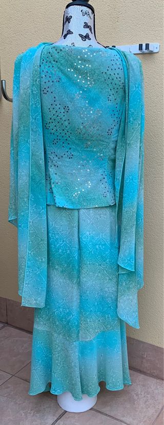 Conjunto de 3 piezas especial ceremonias compuesto de foulard, corpiño y falda en tono verde oscuro/mar con bordados florales en la falda. Talla: 46 (pero como si fuera la 44). Marca local. Tejido 65% nylon y 35% poliéster. Facil de lavar y planchar. Medidas: foulard (1,94 m de largo y 51 cm de ancho), corpiño (51 cm de largo y 45 cm ancho del bajo, 4 cm del tirante y 52 cm de pecho) y falda (106 cm de largo y 40 cm de cintura). Usado una vez. Se entrega limpio tal cual se ve en las fotos. ➡️ Te invito a entrar en mi ARMARIO para ver otra ropa 👗 de tu interés 😉 ➡️ Sigue mi perfil y recibe notificaciones de todos mis anuncios nuevos.