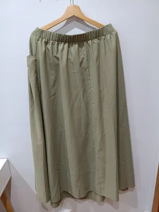 Falda larga de color verde oliva con un diseño elegante y práctico. - Cintura con pinzas. - Bolsillos laterales. - Largo midi.