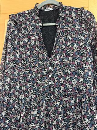 Vestido largo con estampado floral y manga larga. Presenta un cuello en V con botones. - Diseño de volantes en la falda. - Tejido ligero y vaporoso. Usado en 2 ocasiones