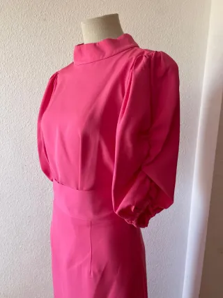 Conjunto de dos piezas de Matilde Cano, ideal para ocasiones especiales. - Diseño elegante y moderno. - Falda larga con abertura. - Mangas abullonadas. - Cierre con botones en la espalda. - Etiqueta original incluida.