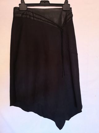 Falda negra corte desigual más larga a los lados. Poliéster . Elástica, talla única con frunce en la cintura. Nueva. Visita mi perfil. Hay muchas cosas de calidad a MB precio 🤗