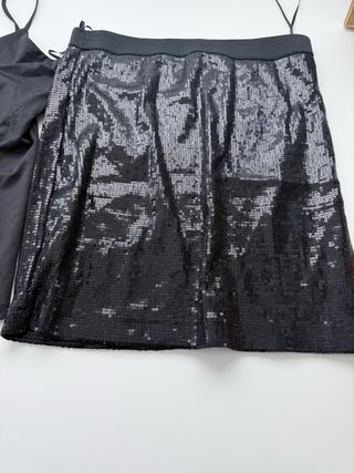 Conjunto de dos piezas con lentejuelas brillantes. - Top asimétrico con tirante. - Falda de tul con cinturilla de lentejuelas. - Diseño de dos piezas. - Talla: EU: 170-176 cm NUEVO