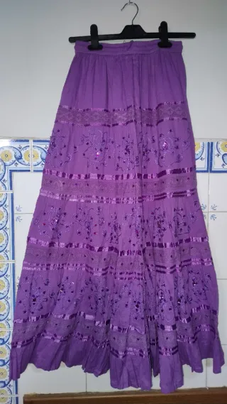 Falda larga morada hippie con bordados