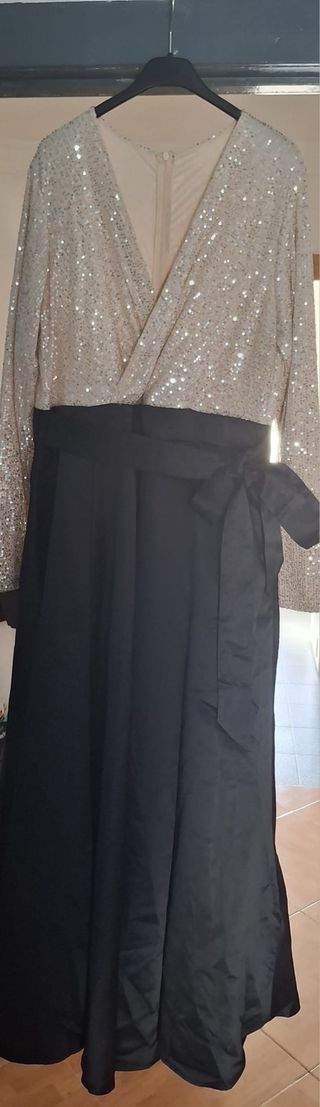 Vestido largo lentejuelas y lazo negro