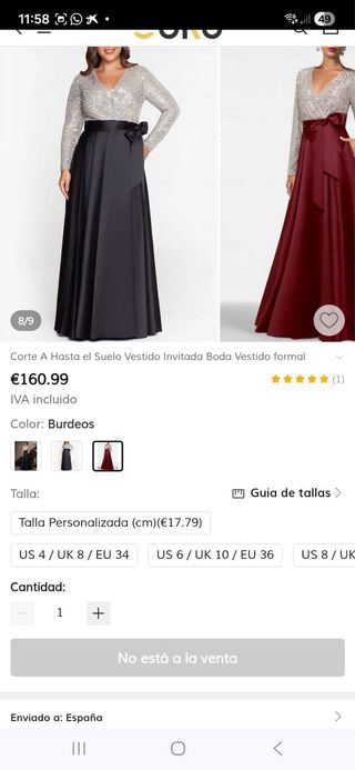 Vestido de fiesta lentejuelas y gasa